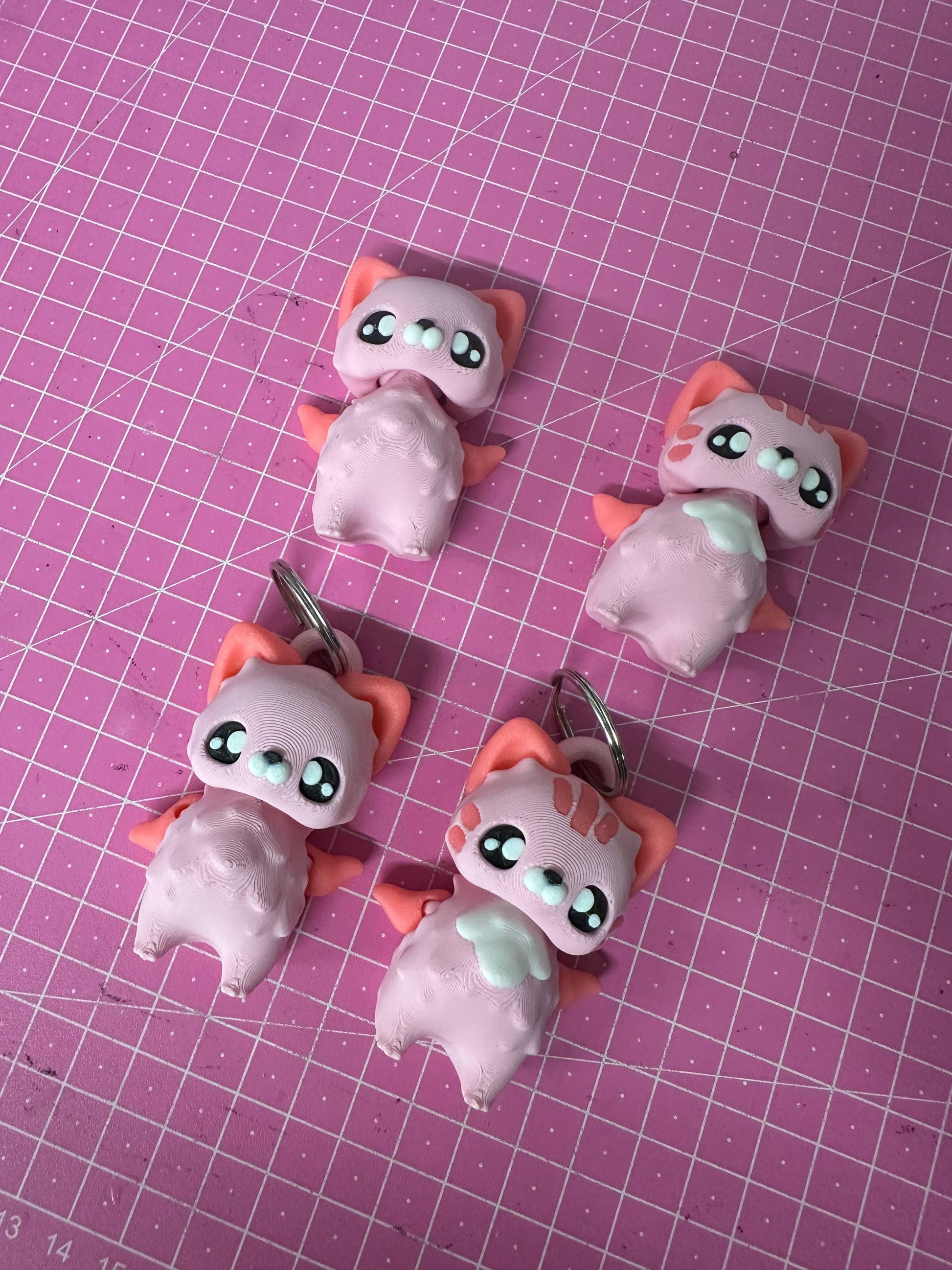 Gefertigt aus hochwertigem PLA, bleibt die Cat Pixie stabil, farbintensiv und detailgetreu – perfekt für den täglichen Einsatz als Schlüsselanhänger oder Deko.