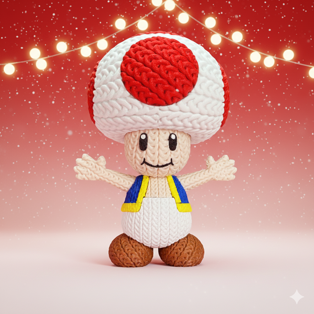 Der Knitted Mushroom Guide fügt sich harmonisch in jede Gaming- oder Fanart-inspirierte Sammlung ein und setzt einen fröhlichen Akzent.