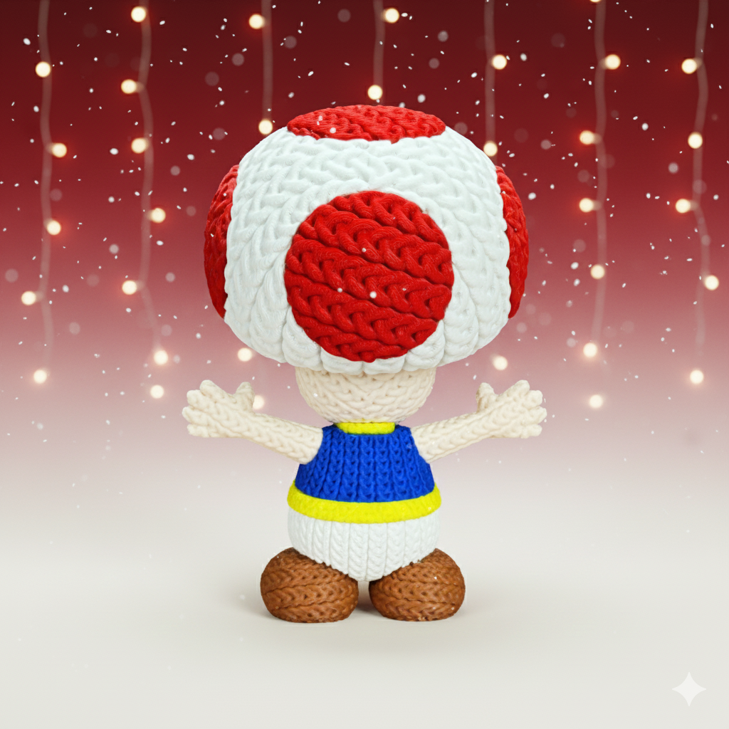 Ein fröhlicher Helfer – neu interpretiert, weich im Look und voller Charme. 🧶🍄