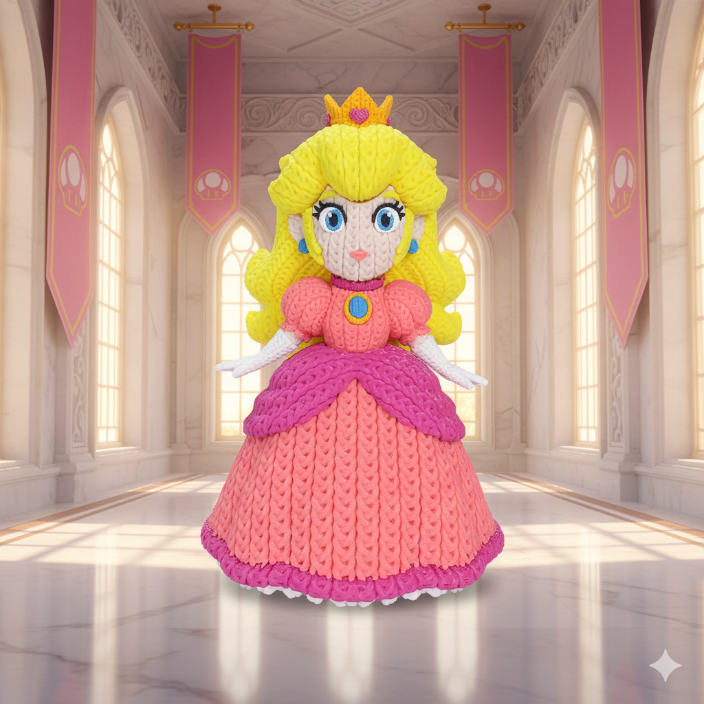 Die Knitted Royal Princess fügt sich harmonisch in jede Gaming- oder Fanart-inspirierte Sammlung ein und setzt einen eleganten, freundlichen Akzent.