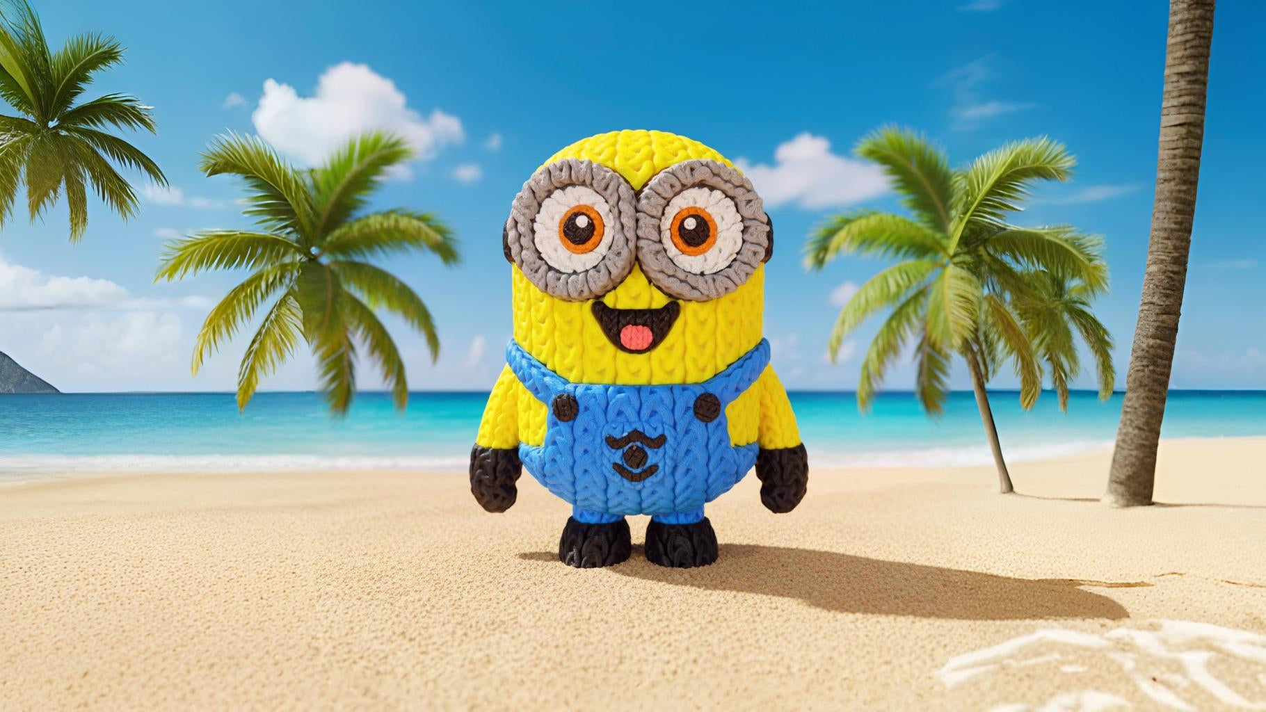 Knitted Yellow Mischief Buddy – Frecher Filmheld im cozy Stricklook Whale 3D Studio Whale 3D Studio