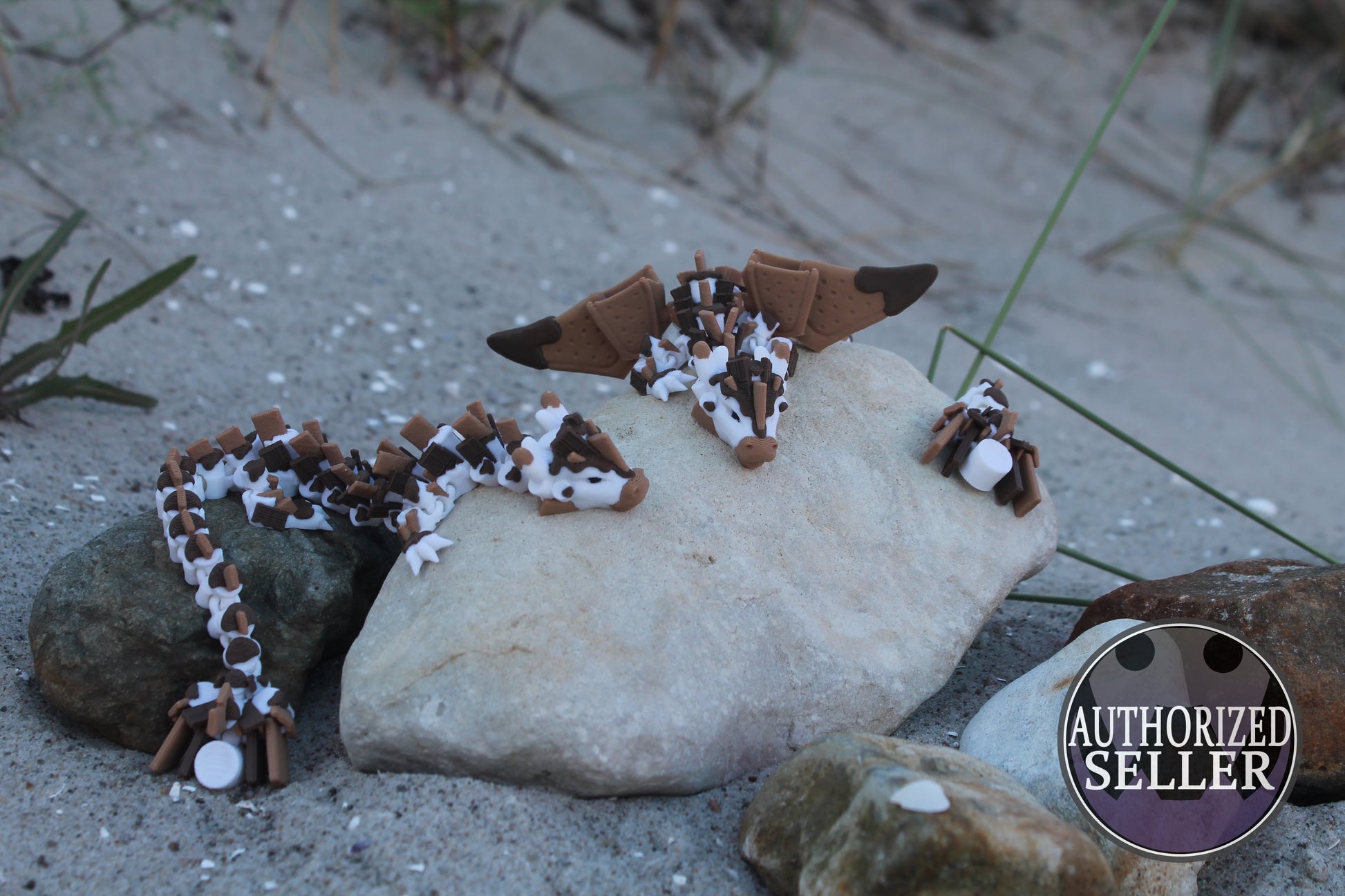 Kuschelig, süß und voller Magie – der Smores Dragon ist die perfekte Mischung aus Fantasy und gemütlichem Lagerfeuer-Flair! Seine cremigen Marshmallow-Farben, die schokoladigen Akzente und der knusprige „Keks“-Look machen ihn zu einem echten Hingucker. Ob mit majestätischen Flügeln oder in der charmanten, flügellosen Version – dieser Drache bringt Wärme und Freude in dein Zuhause. 🍫✨