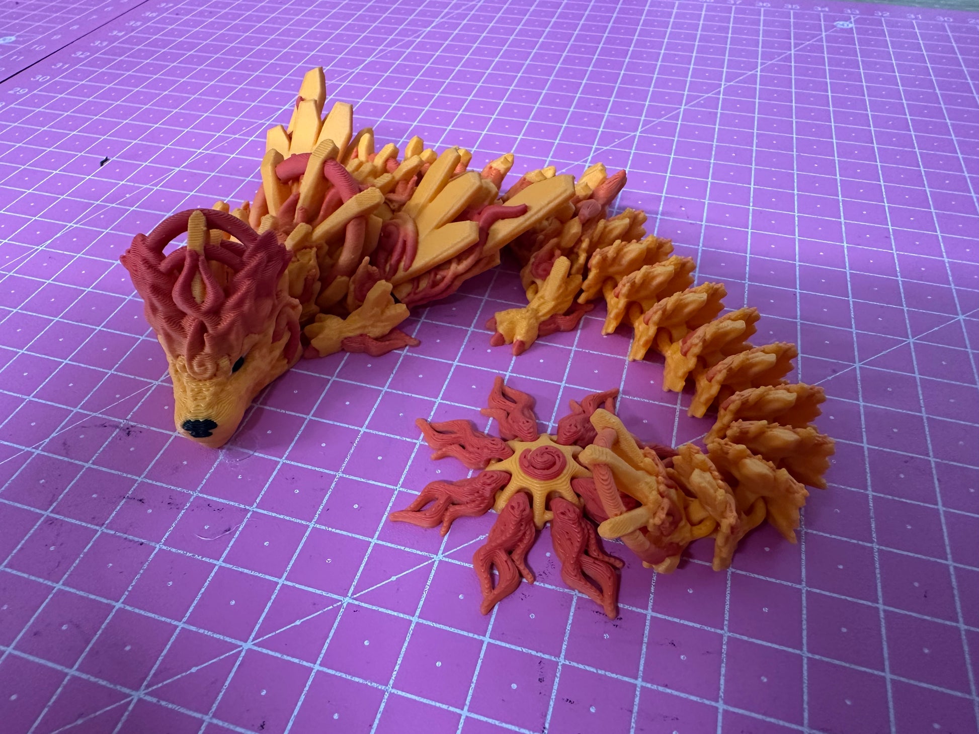 Gefertigt aus hochwertigem PLA, bleibt der Solar Dragon stabil, farbenfroh und detailreich – ein strahlendes Highlight für viele Jahre.